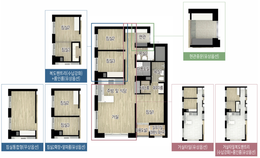 또한 가전제품도 풀옵션 수준으로 제공예정이라고 합니다. 거실 및 주방, 침실(3개소) 총 5개의 시스템 에어컨이 무상으로 제공되며, 삼성 비스포크 냉장·냉동고, LG 빌트인 김치냉장고 및 빌트인 오븐이 적용될 예정. 특히 침실1에는 시스템가구 및 파우더, 선반을 포함한 올인원 드레스룸을 기본으로 제공해 쾌적한 실내 주거환경은 물론 럭셔리한 라이프스타일을 누릴 수 있을 전망입니다.