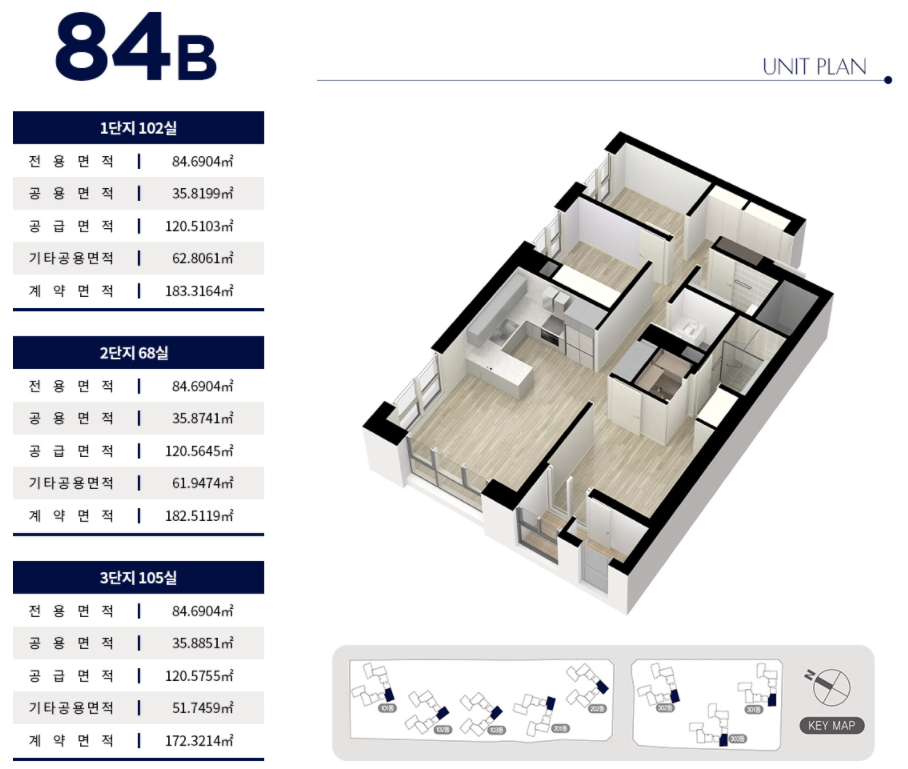 ◆세대수: 84A㎡ 210 실 / 84B㎡ 102실 / 84C㎡ 210 실/ 84D㎡ 210 실 / 160㎡ 6실 / 247㎡ 3 실